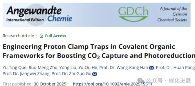文献分享丨江南大学顾志国/韩王康,最新Angew :质子钳陷阱增强COF捕获与光还原CO₂!
